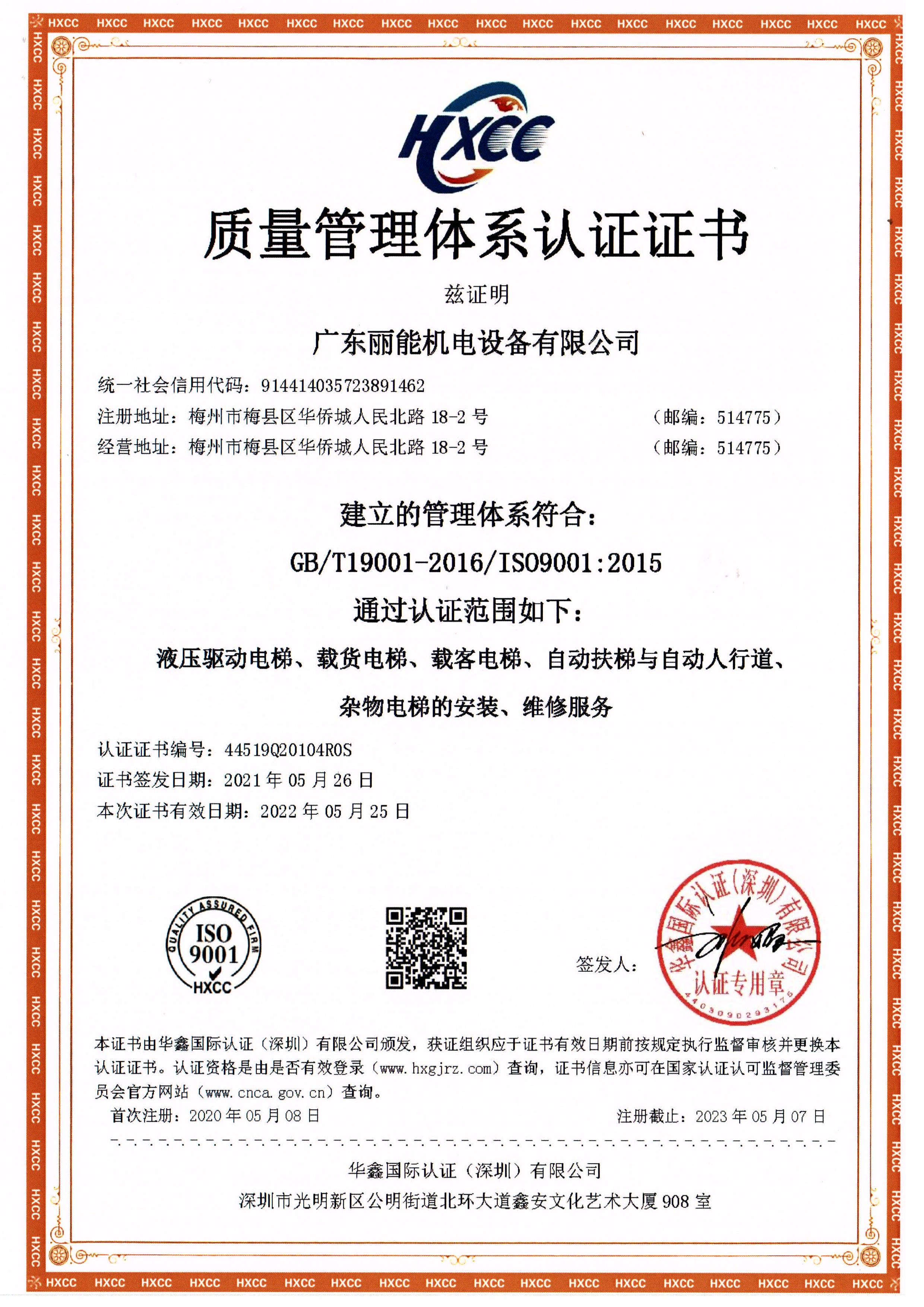 質(zhì)量管理體系認(rèn)證證書【GB/T19001-2016/ISO9001:2015】