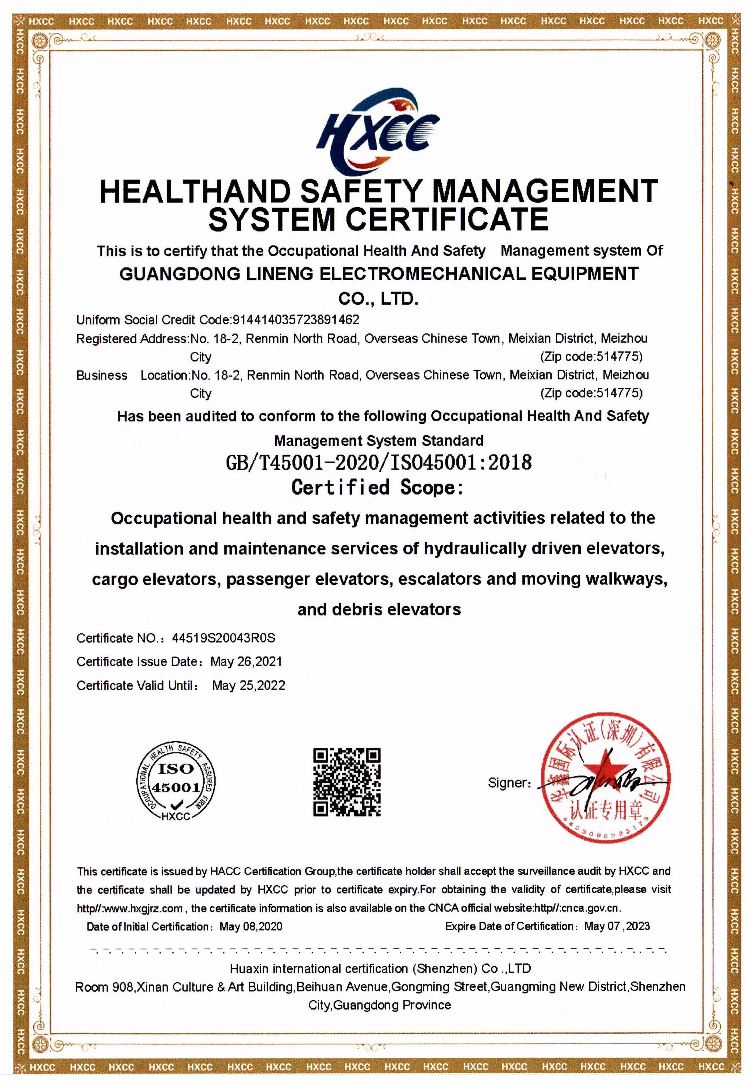 職業(yè)健康安全管理體系認證證書英文版【GB/T45001-2020/ISO45001:2018】
